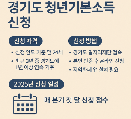경기도 청년기본소득은 만 24세 청년들에게 연 100만 원(분기별 25만 원)을 지급하는 정책으로, 경기 도민이라면 누구나 관심을 가질 만한 혜택입니다. 특히 2025년에도 지속적으로 시행되며, 신청 시기와 조건에 대한 정확한 정보가 매우 중요합니다.