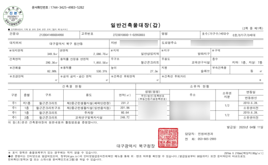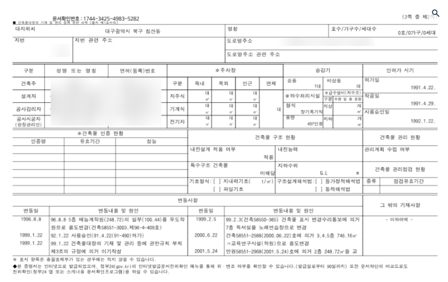 - 면적: 건축물대장 참고